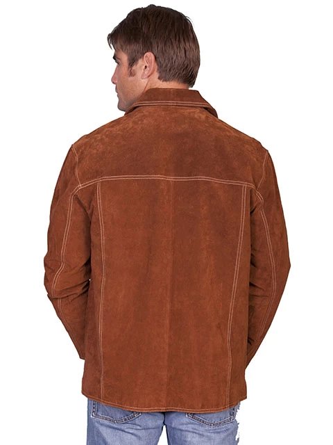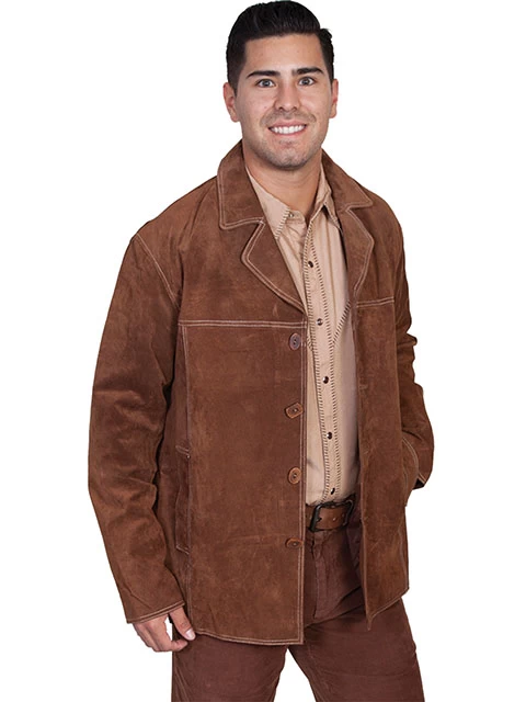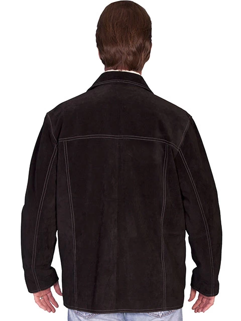 This Boar suede car coat has a four button front with contrast double-stitching throughout. Two side entry pockets. Two inside pockets, one with zipper. 100% polyester lining.