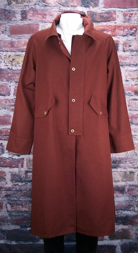 We offer these bushwhacker trail duster in four different colors. Made of 100% cotton canvas, antique brass buttons, two front flap pockets, riding split with gusset.