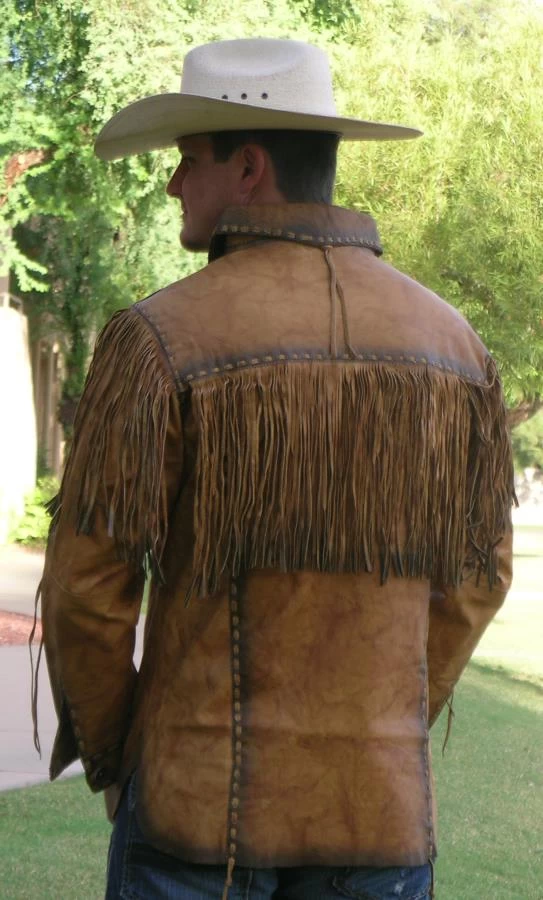 The Cheval Tanned is an unlined pullover shirt made of thin butter soft antiqued looking leather cow hide. It is a traditional Old West style leather shirt. To enhance the classic 19th Century look of this Cheval Tanned Leather pullover shirt has smoked edges and lacing. If you are looking for that perfect leather shirt with the charm of the handmade look of the frontier this is the shirt for you. This Cheval Tanned Leather Shirt has extensive fringe throughout and 2 chest pockets, and Southwestern Artwork on the sleeves.