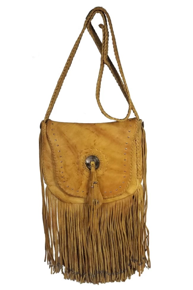 Be the first to review “Concho Studded Leather Fringed Hand Laced Shoulder Bag” Cancel reply