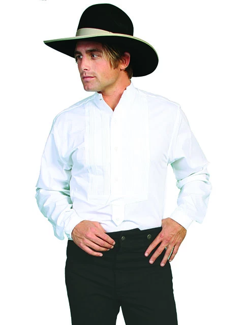 Our original gambler shirt has a band collar with a gold stud and finely pleated inset bib. The high count cotton INCHpoplin INCH is rich and durable. One of our best sellers great for formal casual or anywhere in between. 100% poplin cotton. Made in usa.