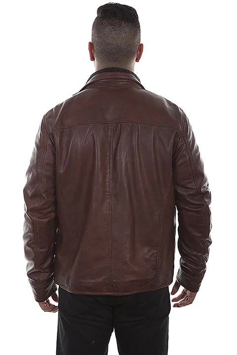 This luxurious leather jacket features a quilted polyester zippered front insert. It has a front zip closure with a horizontal left zip pocket and two lower diagonal side entry zip pockets. Quality craftsmanship in the stitching detail, especially in the shoulder ribbed area and ribbed cuffs. Lined with three inside pockets.