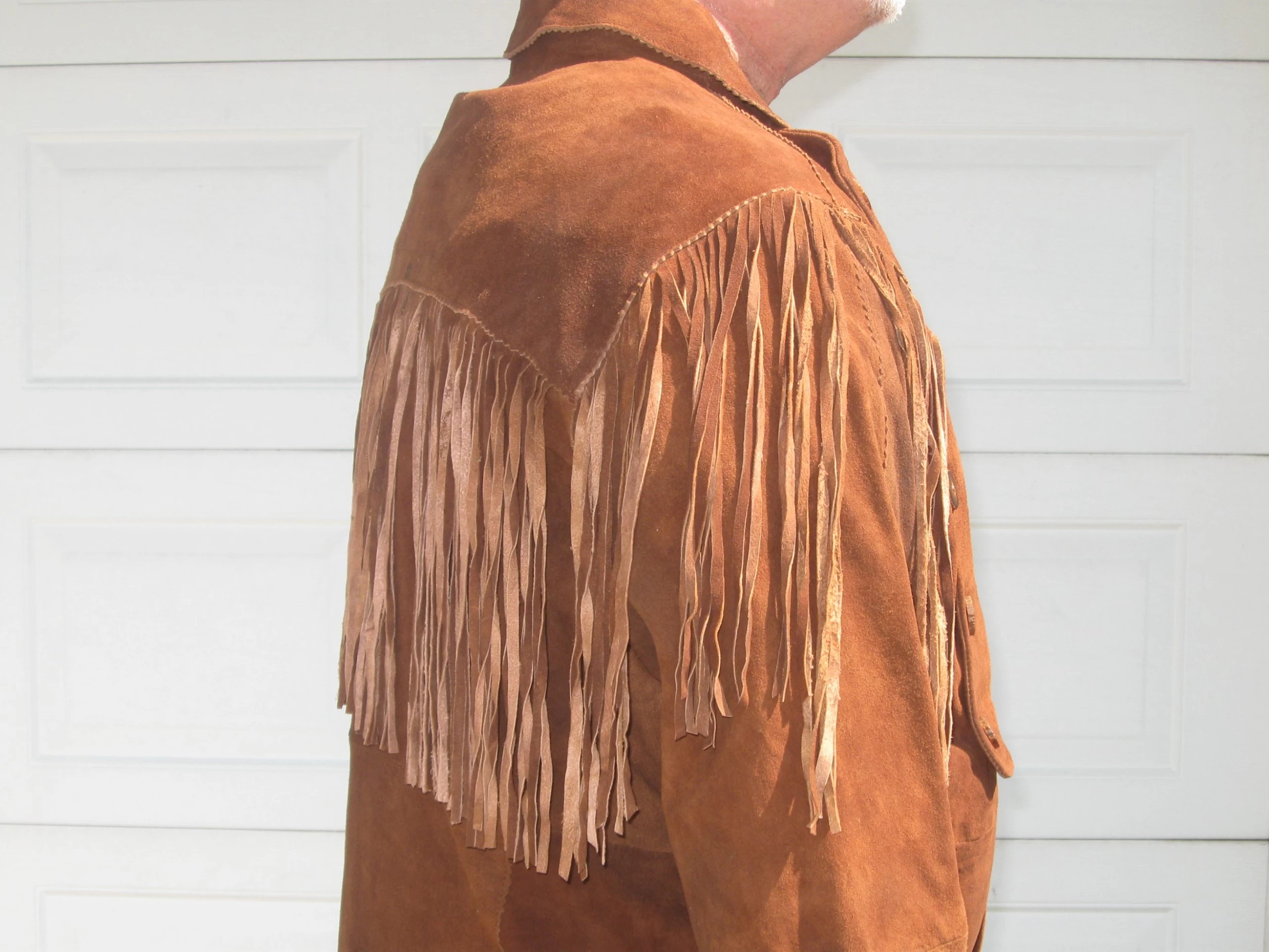 We are proud to introduce to you our Men’s Longhorn Boar Suede Calvary Style Bib Front Shirt. Made of a super soft high quality boar suede leather for maximum comfort and feel. This handmade tobacco brown color pullover bib front shirt comes with fringes on the shoulders and back yoke.