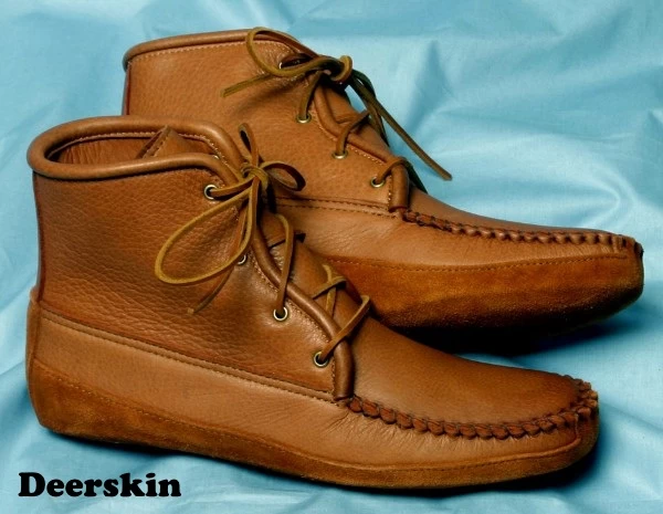 Step into a Footwear by Footskins boot that is designed for comfort and natural foot movement! A double layer of deertan leather and moccasin construction make our Deertan Canoe Sole Walking Boots flexible, breathable and lightweight. The thick cowhide leather canoe sole wraps around the toe and heel. In addition to a Poron cushion insole, a leather insole is inserted between the leather layers for added toughness. These deertan boots are fully lined with smooth deertan leather.