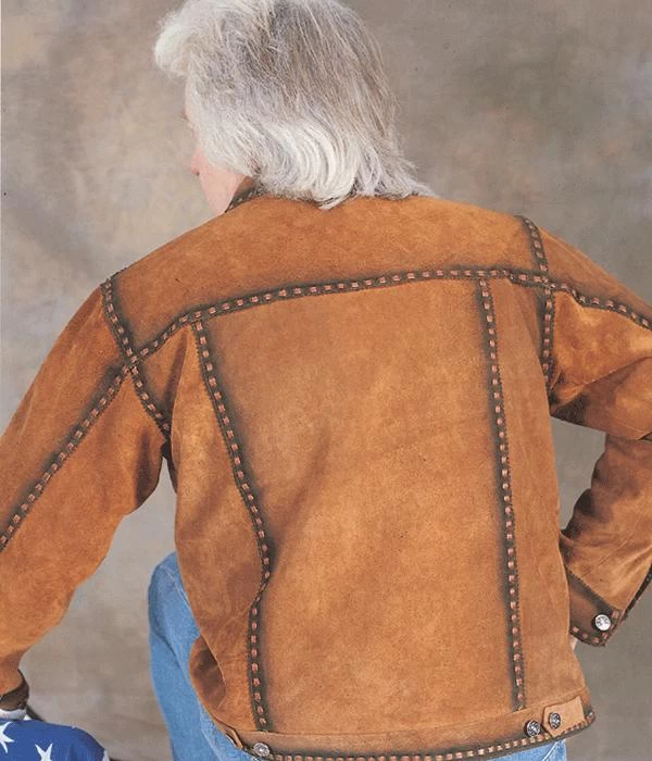 The Rusty jacket is the classic jean jacket in light weight soft cowhide top grain leather, but with a distressed look. It is fully lined in poly-satin and has an extra inner lining pocket. One adjusting tab with 2 buttons on each side of the belt helps you adjust the belt for just the right fit at the hips.