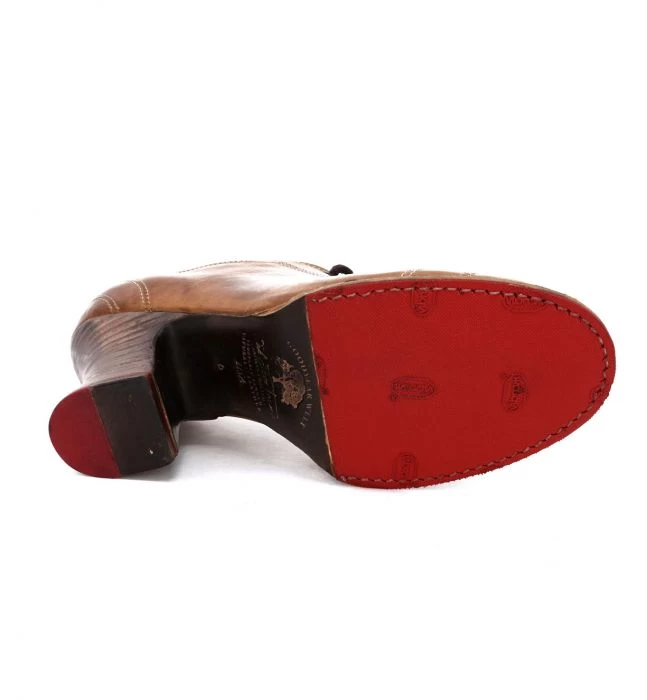 Enchant your life with NANNY. This lace-up style is featuring a hand finished tan leather upper, a modest 3.5 inch heel and a Goodyear welt out-sole. Whether you are out touring a big city or a function locally, this shoe is made to stand out.