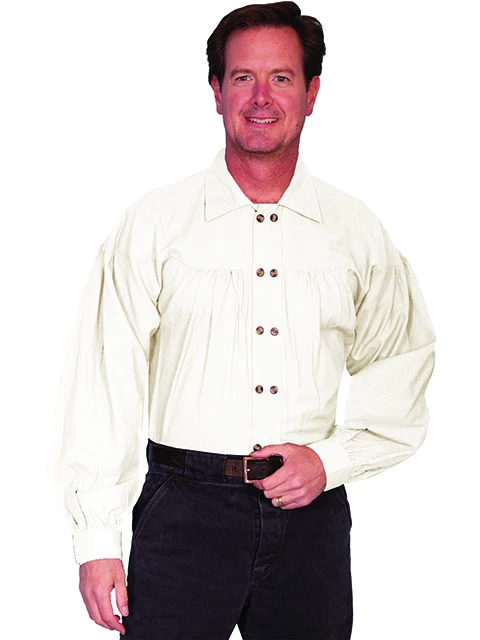 This unique old west style features a double button placket. It has gathered pleats below the yokes front and back and off the shoulder down the sleeves for a more comfortable fit. It also sports a point collar. 100% cotton. Import.
