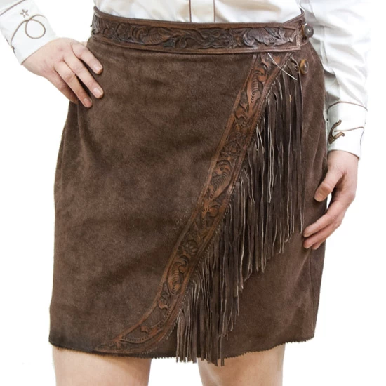 Kobler Leather is a leader in high-quality leather goods for today’s modern country girl has created a one-of-a-kind skirt that will turn heads. This women’s mid-thigh-length Sedona skirt is made of genuine suede in a fitted A-line silhouette. The Sedona has a western tooled leather waistband which features floral tooling and cascading fringe. Bull horn buttons are the perfect touch for this classy western skirt.