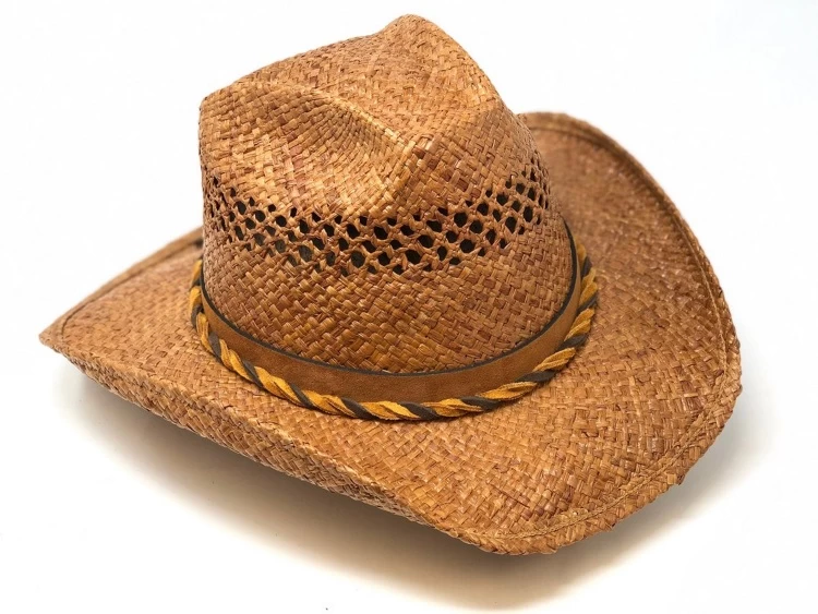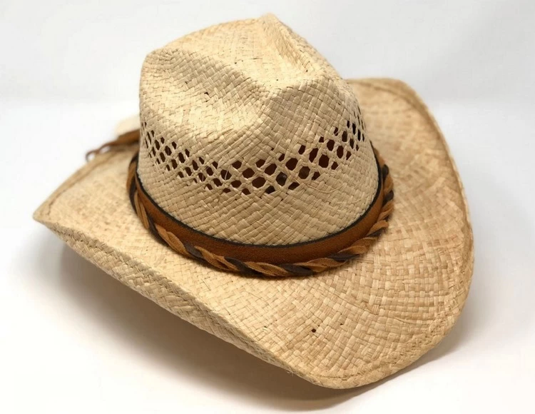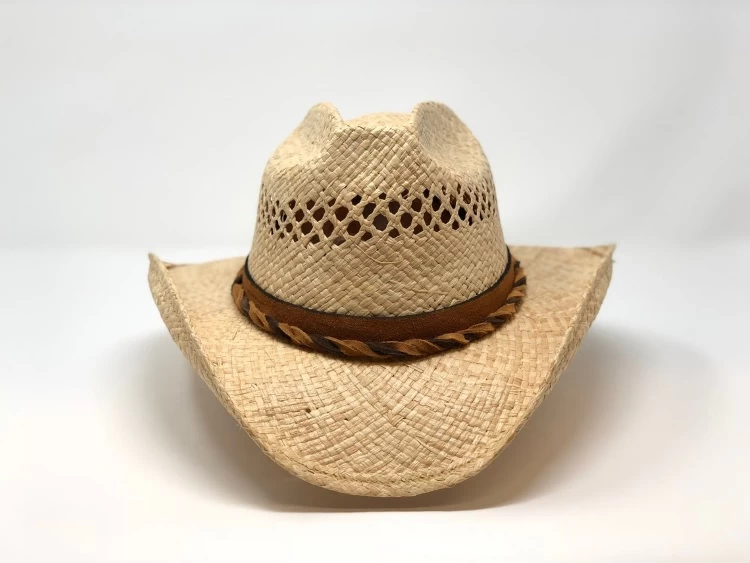 This Shady Brady Harris hat is a SIZE : Medium in a COLOR: Brown with a VENTED Crown and a multi color twisted leather Hat Band. Shady Brady Hats have special shape retention features which are designed into each style of hat to help maintain their distinctive shape and form. Shady Brady Western Hats are made of unbreakable Raffia straw and they have a wire reinforced brim and water resistant coating, Handmade in the USA.