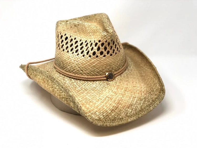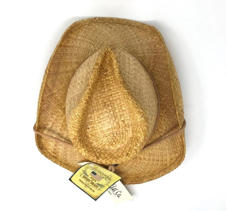 This Shady Brady Hudson hat is a SIZE : Small in a COLOR: Natural with a NON VENTED Crown and a drawstring cord & Conch Hat Band / Chin Strap. Shady Brady Western Hats are made of unbreakable Raffia Straw and comes with a Wire-reinforced Shape-able Brim also a water resistant coating. Remember Shady Brady Hats are Handmade in the USA.