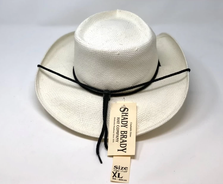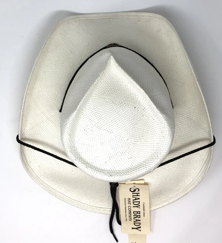 The Shady Brady Western Pinch Front hat is made from a soft yet durable Toyo straw with a solid teardrop crown which features a Cord & Conch Hat Band. The Shady Brady Cord and Conch cord hat band also serves as a stampede chin strap. These Shady Brady Toyo Straw Hats have Special shape retention features that are designed into each style to help maintain their distinctive shape and form.