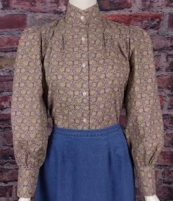 Ladies Old West Garden City Frontier Cotton Blouse (Burgundy Print / Small)
