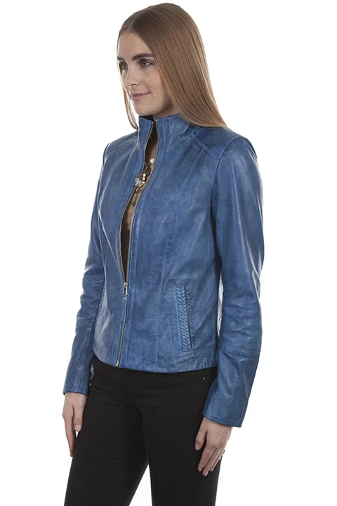 This engaging lightweight jacket features a zip front closure and stand up collar. It has two lower diagonal welt pockets. The interior is lined in polyester and has an inside pocket.