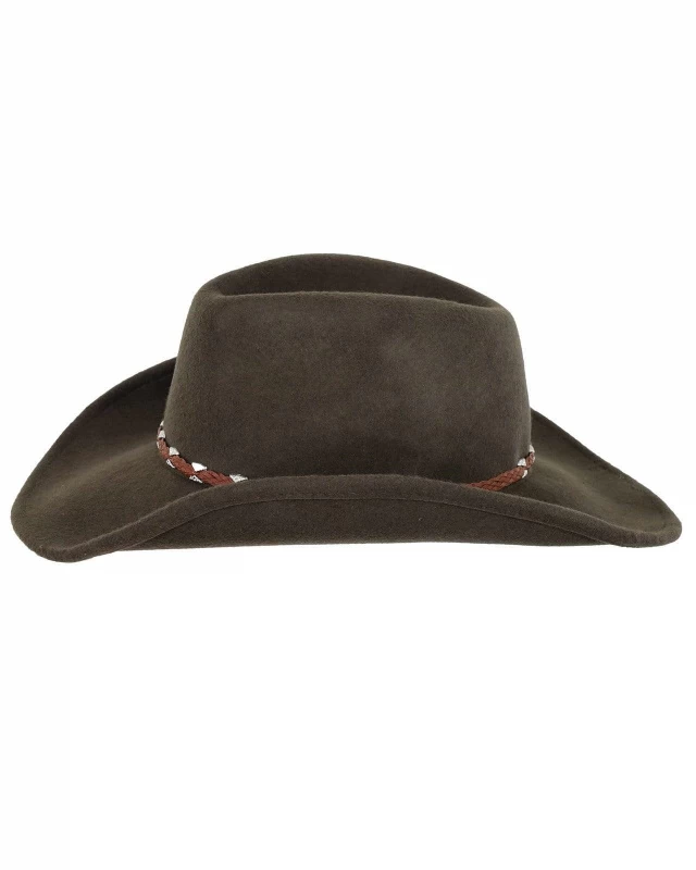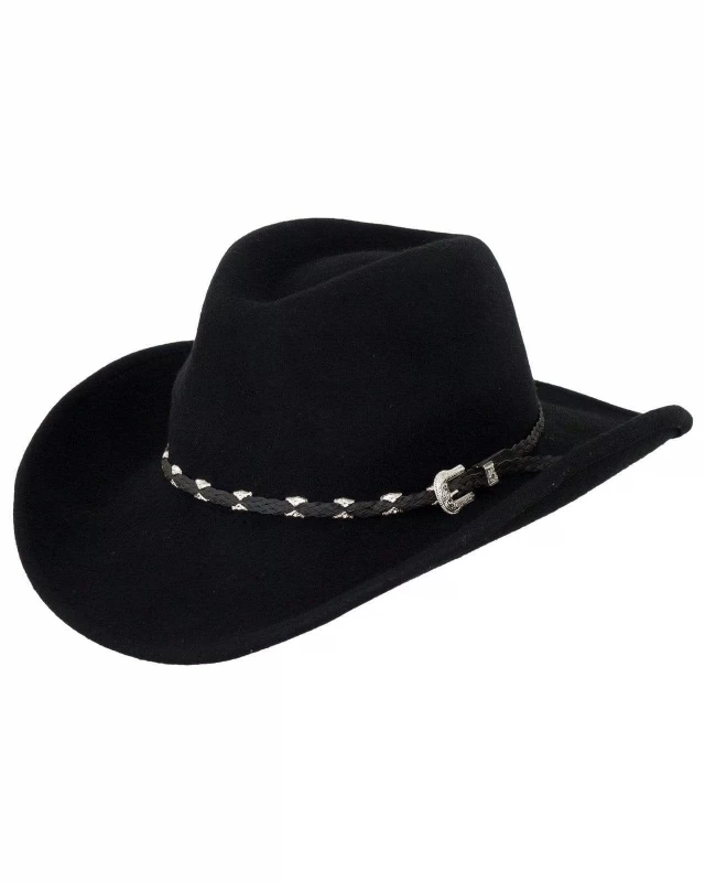 The Wallaby is beautifully crafted with a western flair and an eye catching woven hatband with silver touches and buckle.