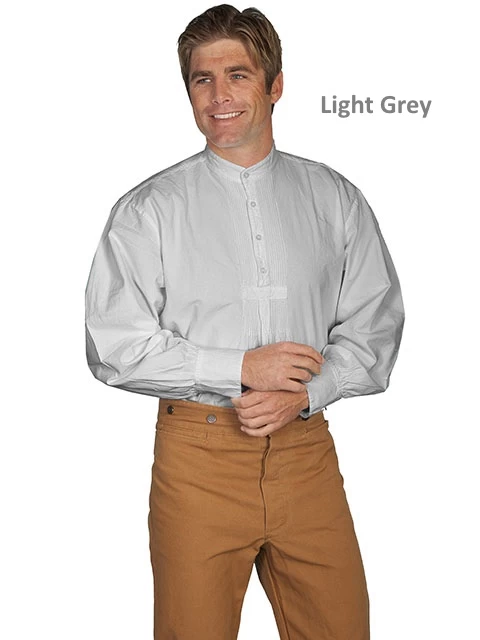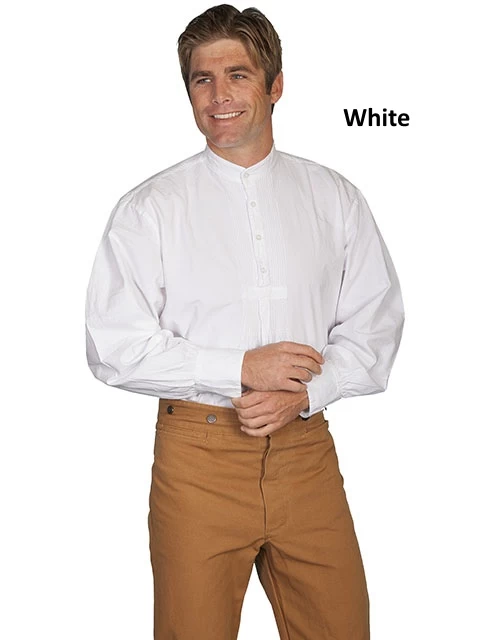 This classic 19th century style shirt is cut full. Has large puff sleeves and a band collar. A unique dying process give this shirt a comfortable lived-in appearence. 100% cotton. Machine wash cold. Import.