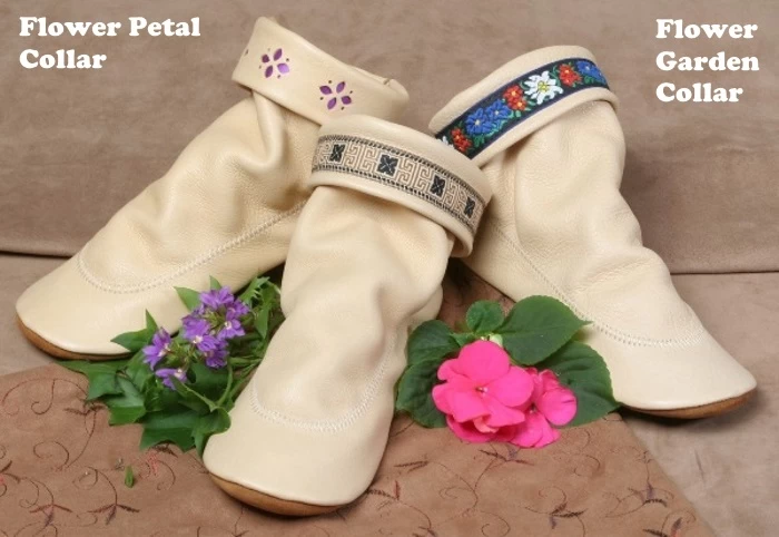 These creme Teepee Boots have an assortment of collar styles. On this page there are 3 styles.