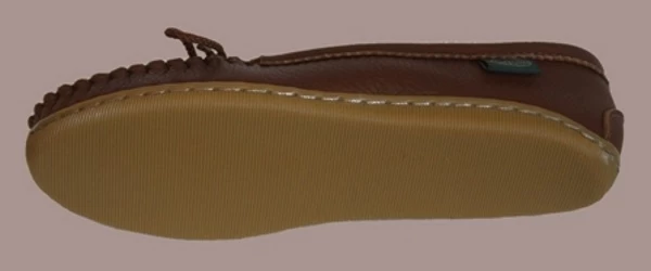 Our most popular sheepskin lined slippers! The soft, genuine sheepskin inside and deertan leather outside combine to make excellent slippers. A flexible molded rubber sole adds wear for use indoors or out. This slip-on style has a functional lace that can be adjusted around the foot.